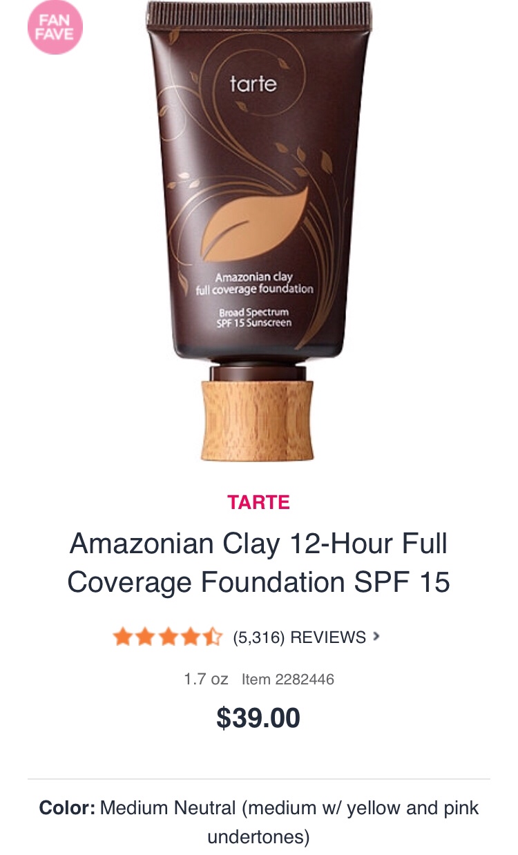 This week I want to talk to you about Tarte Amazonian Clay Full Coverage Foundation. For years, foundation reviews never occurred to me because I always used MAC studio fix or Revon Colorstay Whipped Foundations, both are fantastic so I never felt the need to change it up until I watched my favorite YouTuber Emma Pickles rave about this product in one of her tutorials. What did I have to lose? After years of wanting to try this foundation and being talked out of it every time by a overly made up Sephora employee I decided to take a ride out to Ulta and pick it up.