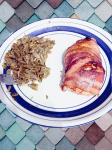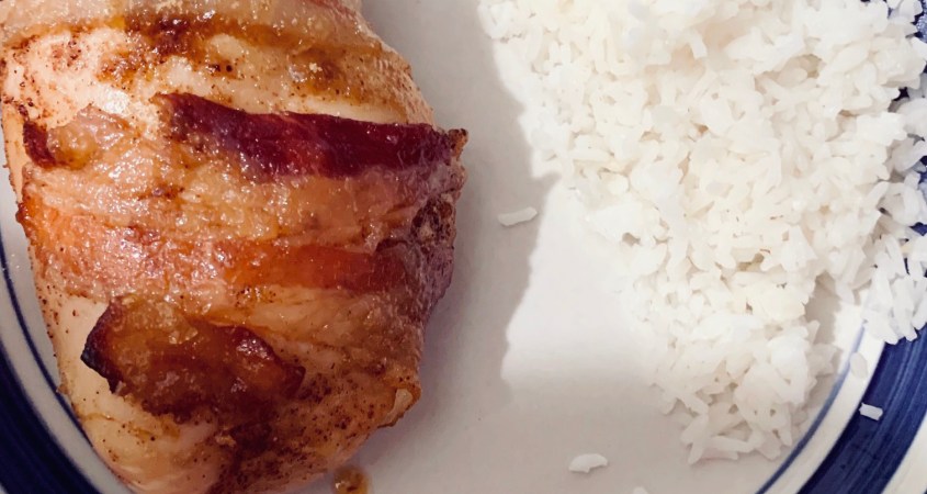 Please be sure to read my full DISCLAIMER regarding recipes and the ingredients I list. I am neither a dietitian nor a nutritionist so please use your own discretion or consult a professional if you have any questions or concerns about making this recipe. Obviously, a well-balanced diet is the way to go, and while my lifestyle is geared towards lower carbs I try not to let it be too restrictive. The picture above shows my husband’s dish, he opted to have his bacon wrapped chicken with rice while I opted to have mine with green beans so aside from how freakin’ easy this recipe is to make what I really love about it is that the side dish can be as versatile as you wish.