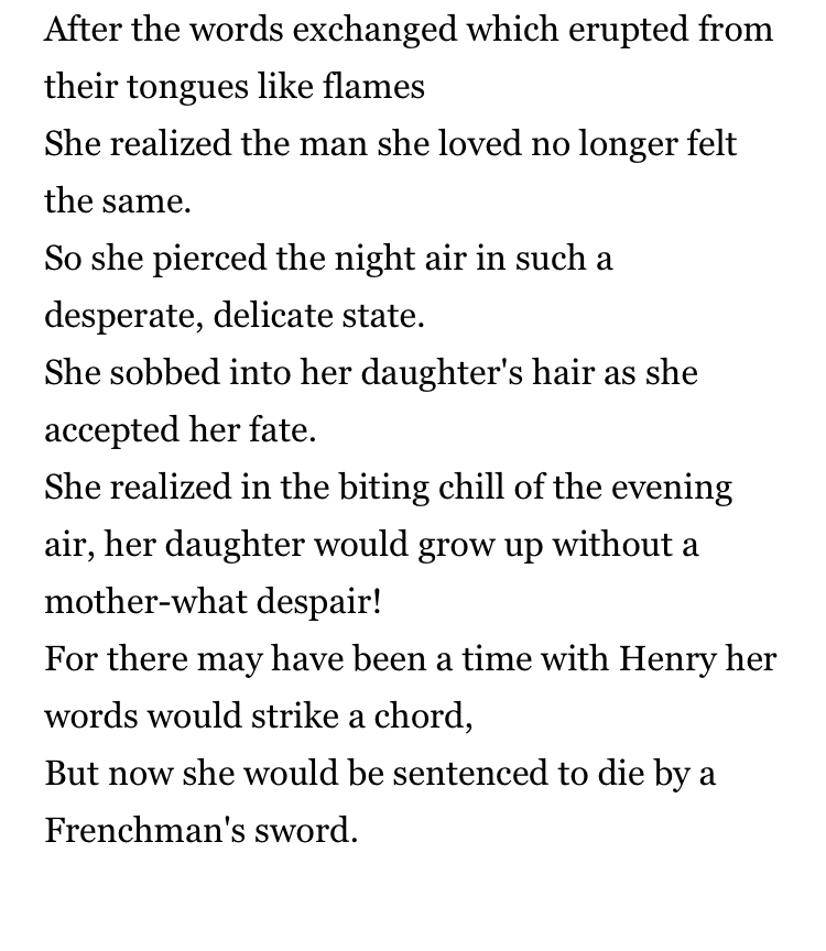 With a deep breath, Katy stepped outside as William came towards her, the wind fiercely whipping her hair and she could see the cruel glint in his eye. “William,” she smiled sadistically, inclining her head in mock respect. “What brings you here at this hour?”